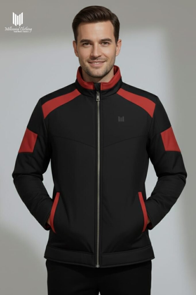 High-Neck Water-Resistant Winter Performance Jacket-Black-Red